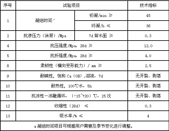 執行國家建材行業(yè)標準《聚合物防水漿料》I型(通用型)物理力學(xué)性能