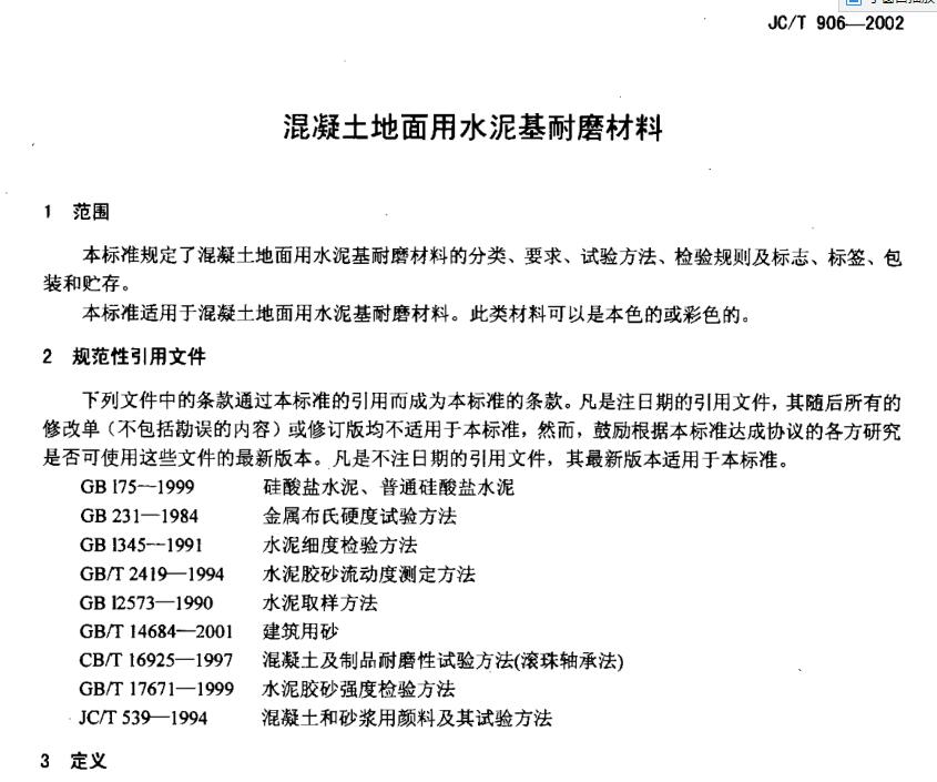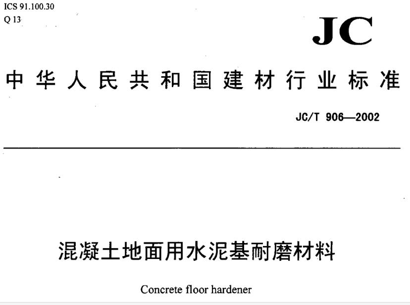 JC/T906-2002混凝土地面用水泥基耐磨材料